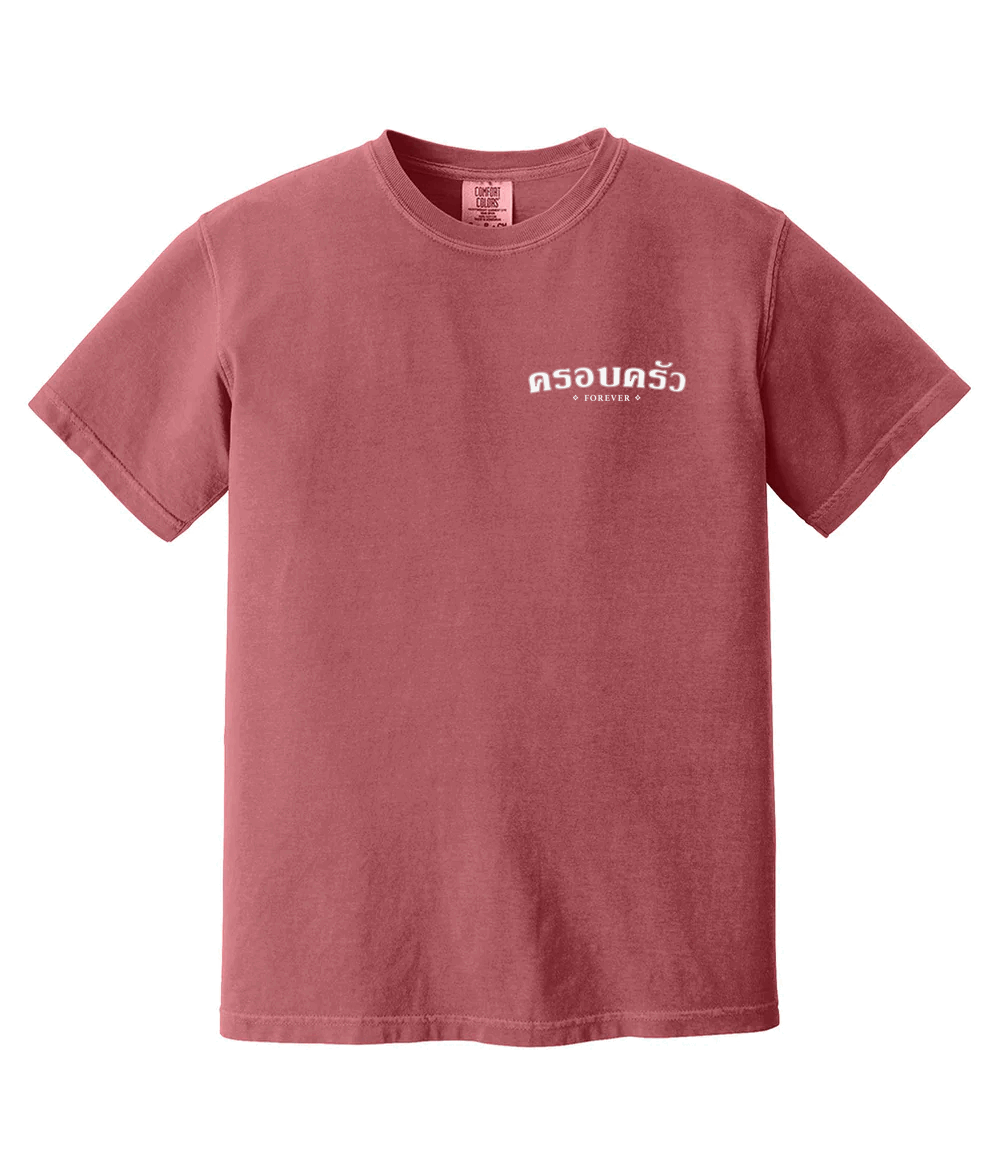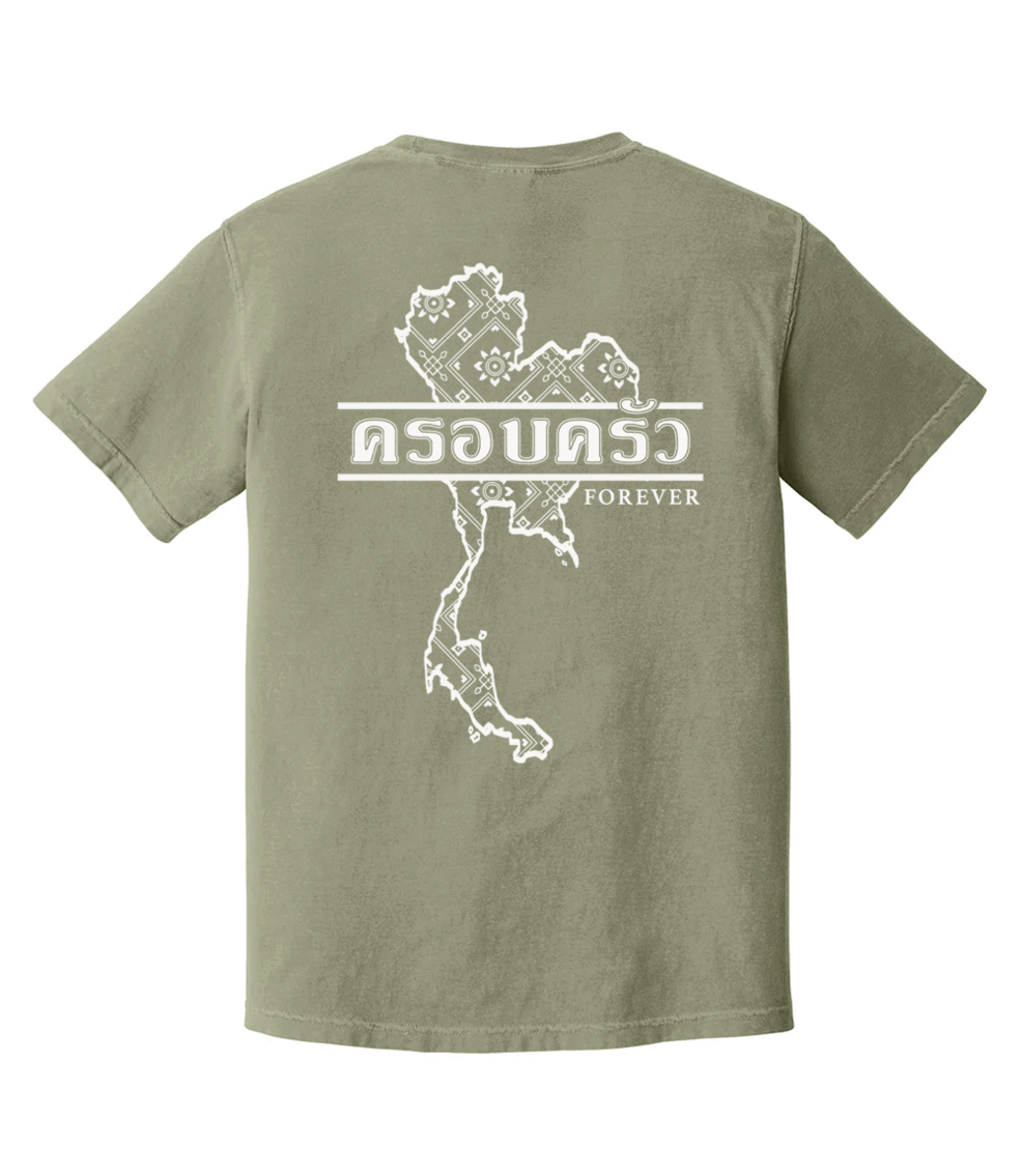 Our Forever Family design carries deep meaning for us β βFamilyβ is written in Thai, reflecting the beautiful and diverse story adoption weaves into our lives. The pattern within the outline of Thailand is from a traditional Thai fabric pattern and serves as a tribute to the rich culture that is part of our familyβs story.